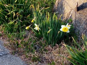 住宅地の入り口でラッパ水仙が咲き始めました。私が社会人になって初めて自分で買ったオードトワレがCoty のDaffodilsでした。ダフォディルスの後は面倒臭くて、余り使いませんでしたね。匂いものが余り得意では無いのですね。