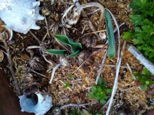 右: チューリップが出て来ました。
