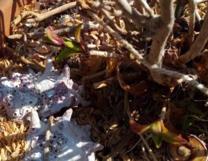 左: 玄関前の紫陽花に新芽が出て来ました。未だ寒そうです。
