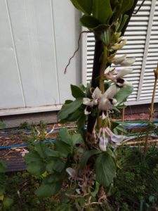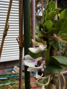 此方は西隣のKさんから頂いた種で11月初旬蒔きでした。昨日、初めての花が咲きました。同じ種でも日当たりや育て方、土、風等の環境によって全く違う形になるものですね。左と中は我が庭の蚕豆ですが、右は西隣さんの蚕豆で背丈25㎝です。