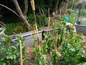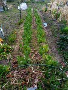 垂直仕立て栽培というのは、蚕豆でもグルグルと麻紐で縛ってしまいます。効果効能が分からない内は縛りながらも『こんな変な格好に縛って、本当に効果があるんだろうか?』、と疑念が頭をもたげます。しかし、少しずつですが、11月に実験用にトンネル無しで植えたキャベツに紋白が付かなかったり、ヨトウが付かなかったオレンジカリフラワーが滅茶滅茶美味しかったり、ロマネスコも大変美味しく楽しめたり、と段々、垂直仕立て栽培に対する信頼が増しています。