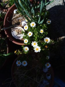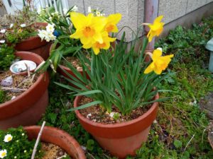 右: 鉢の芳香水仙。かなり強い匂いです。今日は風が強いので分かりませんでしたが。