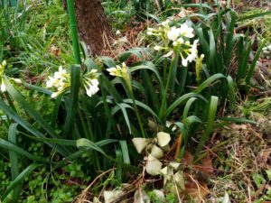 左: 梅の木の下の芳香水仙。