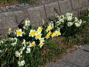 満開の水仙の下には、撮影時には氣付きませんでしたが、沢山の土筆が一斉に出ていました。