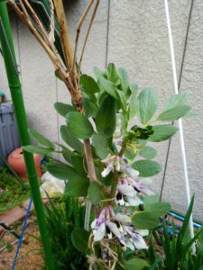 柿木したの蚕豆に支柱を横に立てて縛り直しました。130-150㎝位の支柱が必要なんですね。普通栽培では1mもあれば十分だと思いましたが、ホルモンのせいで背が高くなるんですね。支柱は二本ずつ挿した方が良いのかも。今年は垂直仕立て栽培が初めてでしたから、支柱でまごつきました。全体的に短めの支柱をカリフラワーにも立てて後でやり直しをしました。