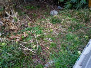 大根を刈り取りました。通路が緑色になっている処が大根の花や葉が置かれています。
