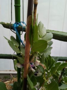 中: 蚕豆が一昨日から4―5㎝以上伸びています。
