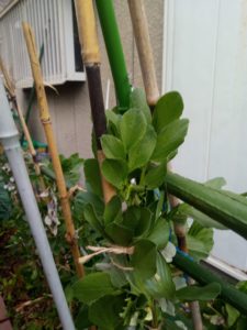 中: 蚕豆が一昨日から4―5㎝以上伸びています。