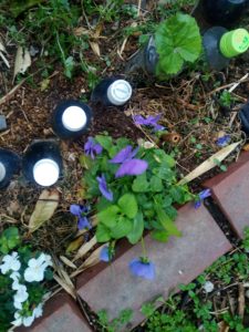 左: 紫のビオラが花を沢山上げて来ました。