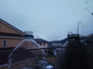 写真は表のwinter-sowingボトルのトスカーナバイオレット(茶色の、甘味が弱いミニトマト)です。私はおやつにする以外は甘いだけのトマトは好きではありません。酸味も程よくあって、それが植物としても健康な状態じゃないかなぁ、と考えています。物干しでつい最近winter-sowingをした福山さんのトマトも発芽して来ました。部内でwinter-sowingするよりも屋外でwinter-sowingした方が何故か植物の生長が良いのです。だからセッカチな私もwinter-sowingに関しては信頼して