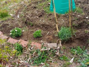 たっぷりと天水を頂いて黒々とした土になりました。種蒔きをした処は草を被せてそれが動いていないから、種は流れてはいないでしょう。