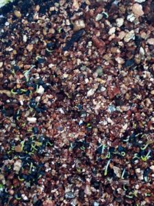 写真は表のwinter-sowingボトルのトスカーナバイオレット(茶色の、甘味が弱いミニトマト)です。私はおやつにする以外は甘いだけのトマトは好きではありません。酸味も程よくあって、それが植物としても健康な状態じゃないかなぁ、と考えています。物干しでつい最近winter-sowingをした福山さんのトマトも発芽して来ました。部内でwinter-sowingするよりも屋外でwinter-sowingした方が何故か植物の生長が良いのです。だからセッカチな私もwinter-sowingに関しては信頼して