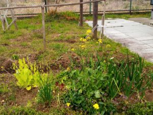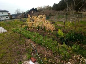 個の畝も先週に引き続き草取りです。今は土作りのために草を乗せていますが、夏には草を刈りこんで生やしっ放しにします。。