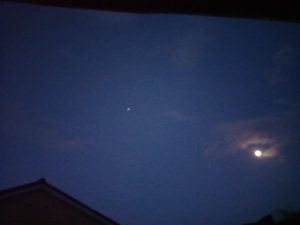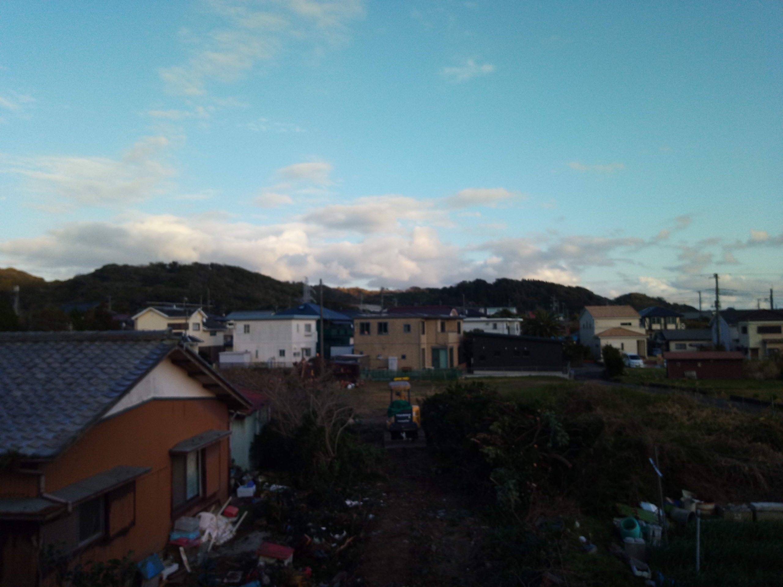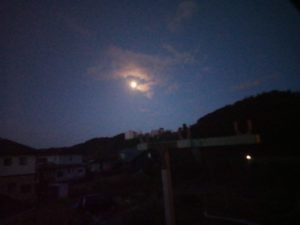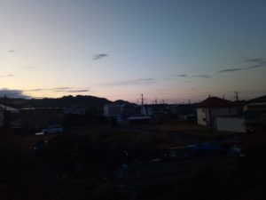 これも寒波の影響ではあるのでしょう。最低気温がそれでも5度台はありそうです。東の雨戸を開けたら、海岸の山並みが眼前に広がっていてビックリ…そうだ、変わったんだ。南西に回った月が庭に半分だけ明るい処を作っています。