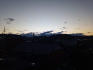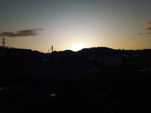 山から日が上がって来る位置がほぼ東になって来ました。真東が鉄塔の見える辺りです。