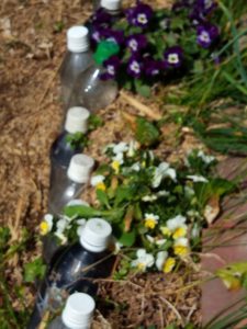 西隣さんに移植した植物達。手前から矢車草6株、ノースポール4株…未だ物干しにも庭にもあるので増えるかも知れません。