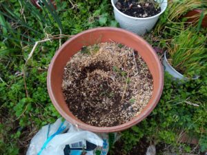 中: 此処に在ったノースポールは西隣さんに引っ越したので、さて、此処には何を植えようかな。