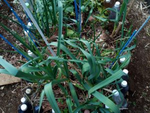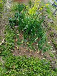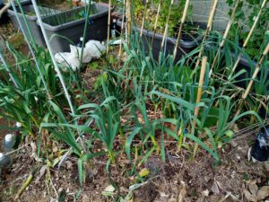 大蒜たちの葉が綺麗です。日本人が云う緑はパステルの緑色では無く、この青でも緑でもある青銅色ですよね。