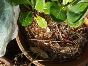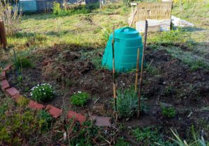 トウモロコシに岩手コンポストさんの生ごみ肥料を撒きました。海水EM活性希釈液も撒いて置きました。庭の玉葱も少しずつ膨らんで来ています。ジョウビタキさんも未だ居ますね。お隣に春菊を火とか部分、枝を落して持って行きました。