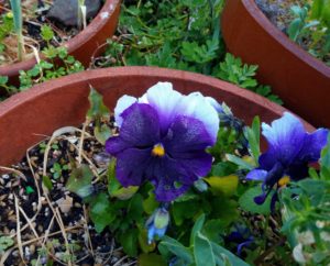 右: 先日の霙で凍っていたパンジ―も元気になって来ました。