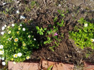 右: 花壇の花も活着したみたいです。