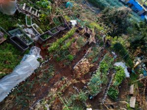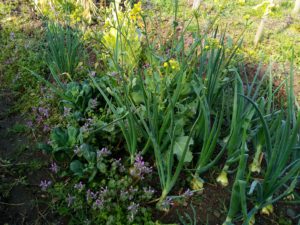 トウモロコシに岩手コンポストさんの生ごみ肥料を撒きました。海水EM活性希釈液も撒いて置きました。庭の玉葱も少しずつ膨らんで来ています。ジョウビタキさんも未だ居ますね。お隣に春菊を火とか部分、枝を落して持って行きました。
