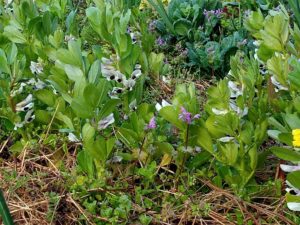 左: 蚕豆の花。
