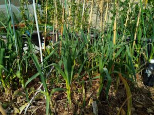 左: 大蒜の葉が綺麗です。