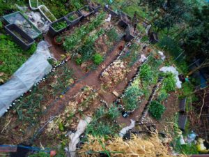 庭土が大分雨水を吸っています。さてさて、水が退けるのはいつ頃かなぁ。今日は一畝の小松菜と高菜を収穫します。サッと湯がいて冷凍して置きましょう。