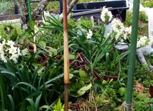 中: 晩生!本物の晩生水仙に蕾が上がっています。