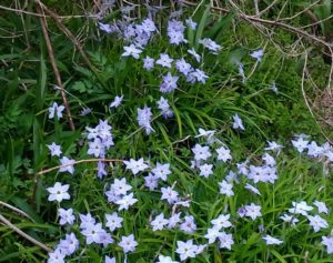ブルーのハナニラは曇りだと綺麗に発色します。何回か、撮影したのですが、晴れて居る日の写真はハレーションを起こして白く写っていました。