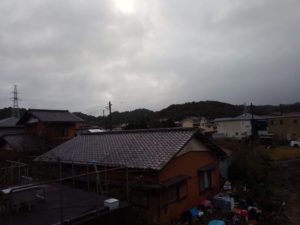 5時、福とうめが帰って来てまたカリカリです。良く食べる!良い事です。何となく白んで来ました。湿気が残っているから靄っぽくなっています。