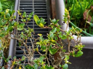 此処から我が家の玄関アプローチのアブラナ科が花をあげています。