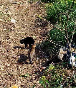 その間に二猫の喧嘩はエスカレート!!!原っぱへ行って、仲裁は出来ないから二匹を離してはい、終わり。ご近所なんだから仲良くしてね。