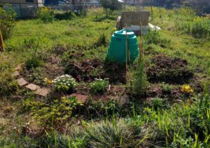コンポスターの周りがドクダミだらけなんですが、Aさんの花壇なんで手は付けません。コンポスターが丸見え、というのもなぁ…とは思ったりしますが、私だったら背の高い花を植えるでしょう。或いはコンポスターが見えても水仙が群がって咲いたら綺麗だろうなぁ。