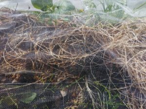 本日の朝は3-4度台まで下がります。昨夕、不織布を直接かけて置きました。
