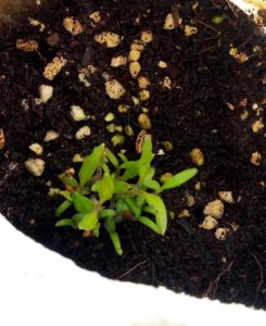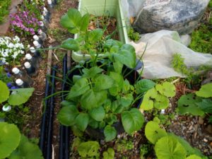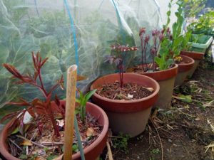 左: winter-sowing 茄子。中: トスカーナバイオレット。右: ニチニチソウ。