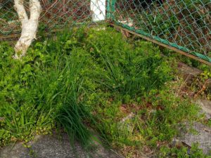 春は定期的に雨が訪れるので、草の伸びが早いです。西隣さんの地面もあっという間に緑になりました。草丈は低いですが、もう一段階上の暖かさが訪れれば草の絨毯から一氣に立体的に伸びてしまうでしょう。目立たないドクダミやら何やらを鋸窯で刈り取る作業が必要不可欠です。この時期を逃すとドクダミ畑が出来上がります。