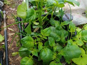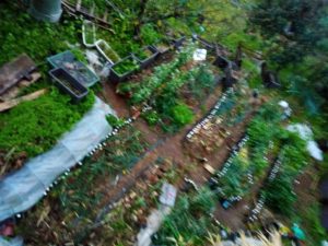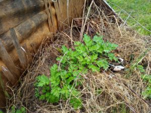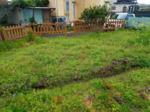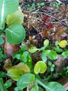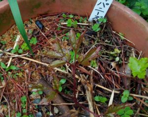 中段左: 堆肥枠で生き延びている蓬は先日私が此処に入れたものです。元気、元気。