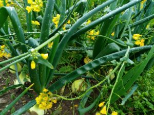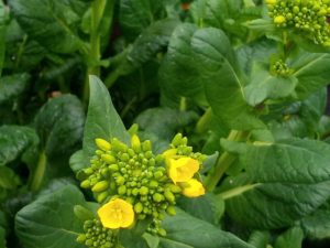 左: 小松菜の菜の花が咲きます。