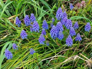 下段左: ムスカリがこの間まで呆けた色だったのは水不足だったのね。