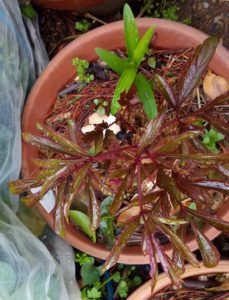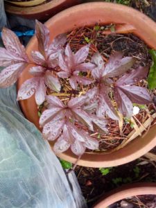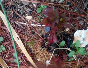 winter-sowingボトルの中で芽を出したトマトは確り軸が赤くなっています