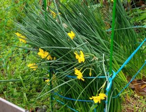左: 昨夜の強い北風に煽られた黄水仙。