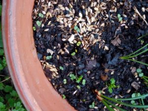 物干しに出しっ放しのwinter-sowingボトルでは細葱の間で20粒近いトマトを蒔いたのですが、幾つ発芽してくれることでしょうか? 今日、ようやく一つが端で発芽しているのを見つけました。嬉しい!