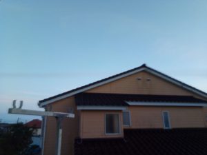 通路には水は残っていません。近所の銅葺き屋根も乾きつつあります。。