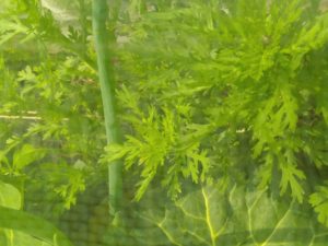 キャベツトンネルの中の春菊。