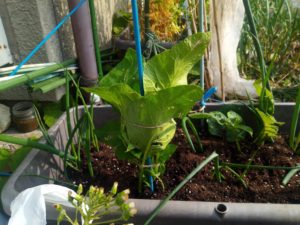 赤紫蘇は念の為にプランターにも蒔き、プランターに人参、ケースでは落花生を蒔きます。昨日、最後の2つのグランドペチカを南側のプランターに入れました。脇の通路のジャガイモにニジュウヤホシが付いていて今までに4-5匹捕えました。あ、ごめんなさい。垂直仕立て栽培をしていない!今日はジャガイモさんを垂直仕立て栽培します。山東菜とキャベツを人参プランターに人参を蒔いてから仮移植しましょう。多分後2週間もすれば、畝に行ける、と思います。