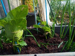 物干し下の人参のプランターに向陽人参とピッコロ人参の種を蒔いて来ました。ネット(網)を麻紐で修復したり、紅花インゲンに麻紐を垂らして見たり、山東菜を人参のプランターに植えてみました。
