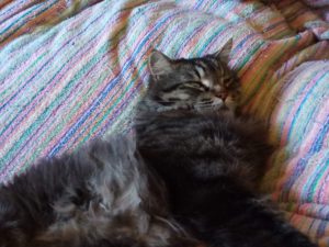 猫達の毛皮も夜露が降りた草の間を歩いて来た感じでしっとりしています。長毛の男の仔達のお腹迄バスターズを使って毛を梳きました。『週一で良いから毛を梳いて呉れると嬉しいなぁ。』