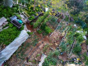 四畝の南(上)側で緑が鮮やかなのは零れ種で生えた水菜です。今年も出て欲しいな。